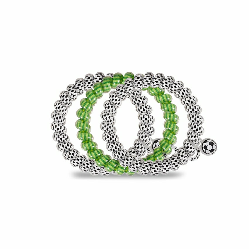 Hold your hair and enhance your style with TELETIES. The strong grip, no rip hair tie that doubles as a bracelet. Strong, pretty and stylish, TELETIES are designed to withstand everyday demands while taking your look to the next level.Sold in packs of three.The large size is 6.5cm wide x 1cm thick.